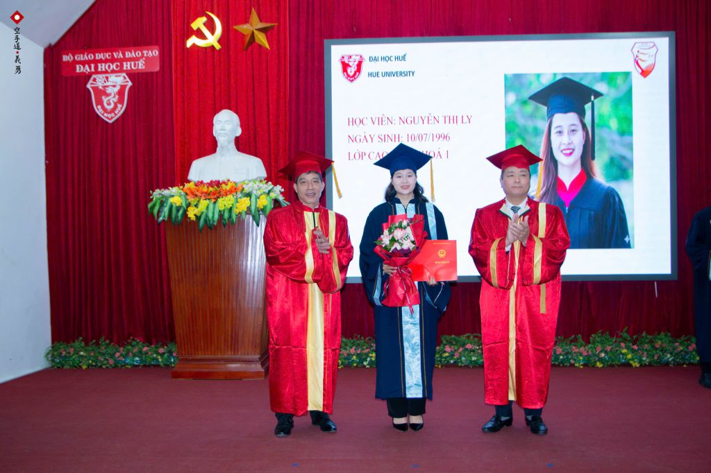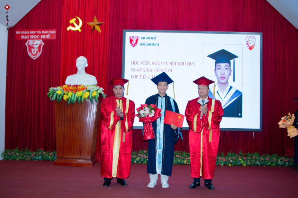 Tại buổi Lễ, 04 tân thạc sĩ và 15 tân cử nhân được trao bằng tốt nghiệp. Điểm sáng tiêu biểu trong đợt này là Tân Cử nhân Phan Út (lớp Thể chất 19), người đã xuất sắc đạt danh hiệu sinh viên tốt nghiệp loại Xuất sắc toàn khóa và vinh dự nhận Giấy khen của Giám đốc Đại học Huế. Đại diện cho học viên và sinh viên được trao bằng, Tân Thạc sĩ Nguyễn Thị Ly đã bày tỏ lòng tri ân sâu sắc tới Ban Giám đốc Đại học Huế, Lãnh đạo Khoa, quý thầy cô giáo và gia đình – những người đã luôn đồng hành, dìu dắt và tiếp thêm động lực để các học viên, sinh viên vững bước trên con đường học tập và trưởng thành.